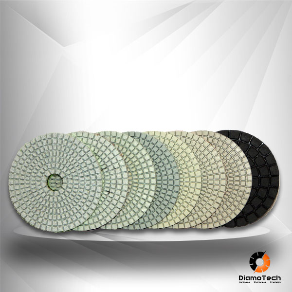White pigment free polishing pads ideal for use on light colored stone, engineered stone, marble, granite and concrete.